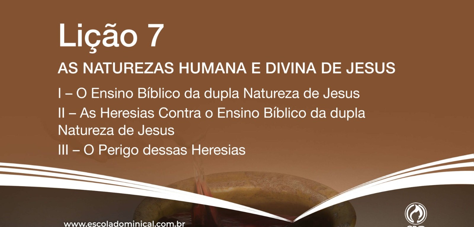 Neste domingo, dia 16, a Escola Bíblica Dominical (EBD) traz o estudo sobre “As naturezas humana e divina de Jesus” nas salas de adultos, cuja verdade prática e a seguinte: Jesus é o eterno e verdadeiro Deus e, ao mesmo tempo, o verdadeiro homem. A lição aborda três importantes tópicos: 1) O ensino da dupla natureza de Jesus; 2)As heresias contra o ensino bíblico da dupla natureza de Jesus; e 3) O perigo dessas heresias na atualidade. A aula começa às 9 horas.