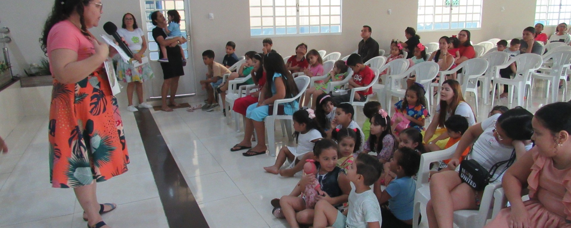 A Assembleia de Deus Água Viva (Sede) realizou na tarde do último sábado, dia 22, o Culto Infantil sob o tema “Os 10 mandamentos”, com referência bíblica em Êxodo 20.1-17. O culto contou com muito louvor, dança e oração da criançada. O irmão Levi Araújo levou uma breve reflexão sobre o tema e a tia Consul Sousa ministrou a palavra. Após o culto, o Departamento Infantil da igreja, coordenado pela irmã Thiciara Mesquita, ofereceu lanche a todos os presentes, incluindo as crianças e seus responsáveis, bem como pipocas e doces para os pequeninos na despedida. O Culto Infantil na Sede acontece sempre no terceiro sábado do mês.