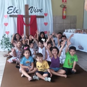 A Assembleia de Deus Água Viva (Sede), através do Departamento Infantil, realizou a festa da Páscoa para a criançada na manhã deste domingo, dia 20, durante a Escola Bíblica Dominical (EBD). Na ocasião, a tia Conceição Oliveira iniciou com uma oração, a tia Uilzangela Mesquita contou a história sobre a verdadeira Páscoa, todas as crianças juntas cantaram o hino da harpa cristã “Porque Ele Vive” e a tia Carla Almeida cantou um louvor. Em seguida foi servido um lanche, contendo suco de uva e pão com patê, preparado pela irmã Iracema Matos. Os trabalhos do Departamento Infantil estão sob a liderança da irmã Thiciara Mesquita.
