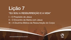 “Eu Sou a ressureição e a vida”. Este é o tema da sétima lição que será aplicada neste domingo, dia 18, na sala de adultos da Escola Bíblica. Baseado na verdade prática que diz “o Senhor Jesus Cristo é a ressureição e a vida, e por essa razão, temos a garantia de que um dia teremos um corpo glorioso como o dEle”, o tema será aprofundado abordando os seguintes tópicos: O propósito de Jesus; O encontro de Marta com Jesus; E a doutrina bíblica da ressureição do corpo. A EBD começa às 9 horas.