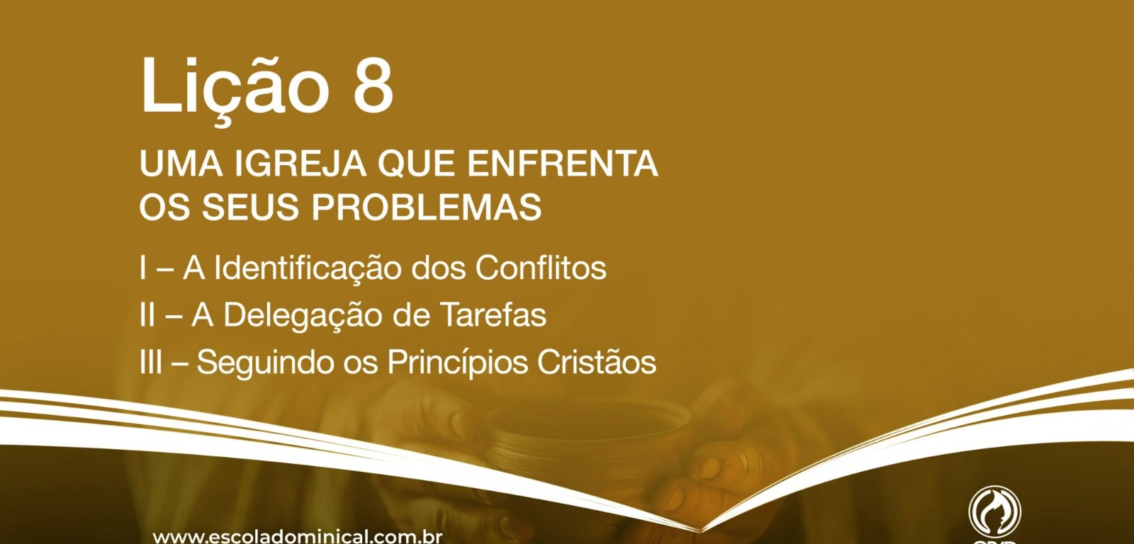 Uma igreja que enfrenta os seus problemas. Este é o tema da lição de adultos neste domingo, 24, na Escola Bíblica Dominical (EBD). A lição vai ensinar a importância do serviço cristão, que a igreja espiritual também é a social, e assim a igreja cresce e Deus é glorificado. Os tópicos abordados serão: I) A identificação dos conflitos; II) A delegação de tarefas; III) Seguindo os princípios cristãos. A aula começa sempre às 9h.