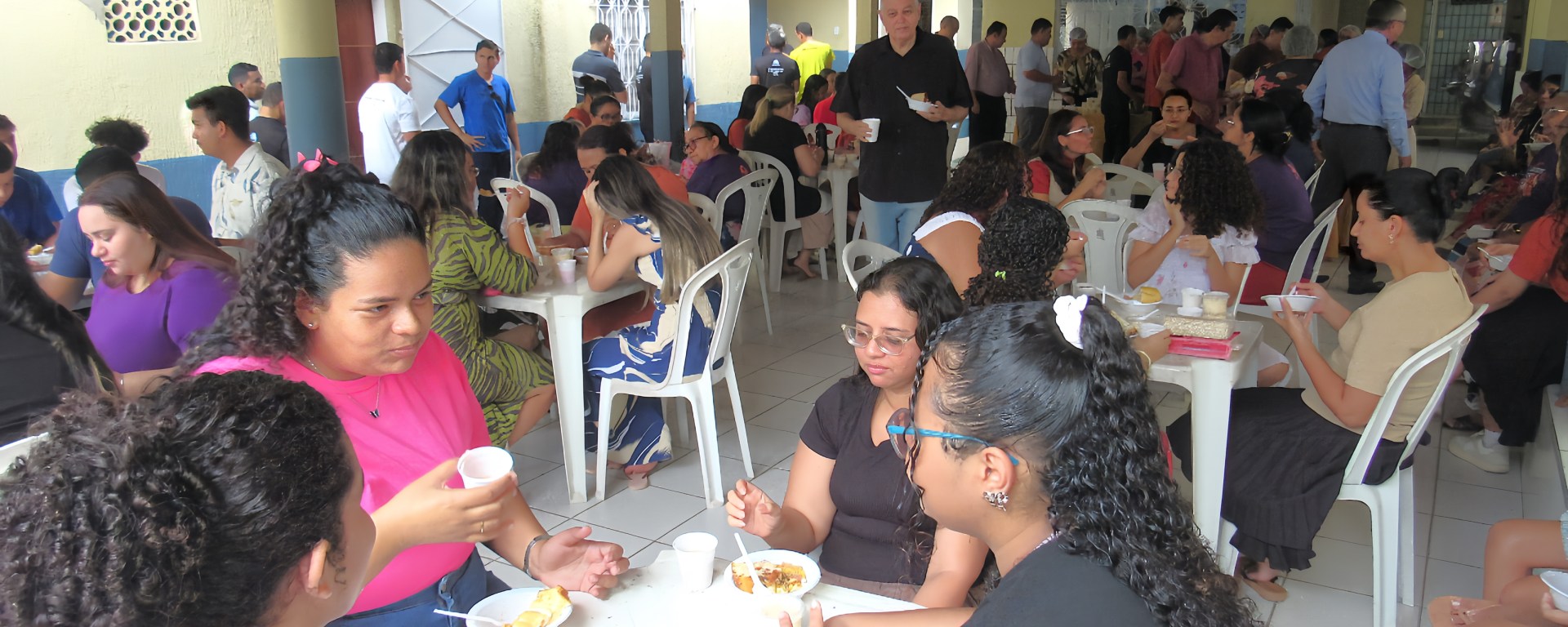 A Assembleia de Deus Água Viva (Sede) realizou um café da manhã no último domingo, dia 18, em comemoração ao início de mais um trimestre de estudos da Escola Bíblica Dominical (EBD). Às 8h o pastor João Alberto fez a oração inicial e consagrou o alimento. Em seguida foi servida a refeição com uma variedade em pães, cuscuz temperado, tapioca, mungunzá, ovos, queijo, presunto, café, leite, suco, entre outros, todos preparados de forma voluntária pelos membros da igreja. Além de servir bem os irmãos, o intuito foi promover um momento de comunhão na igreja. Este evento é um costume da AD Água Viva a cada três meses. Logo após o café, às 9h, começou a aula da EBD.