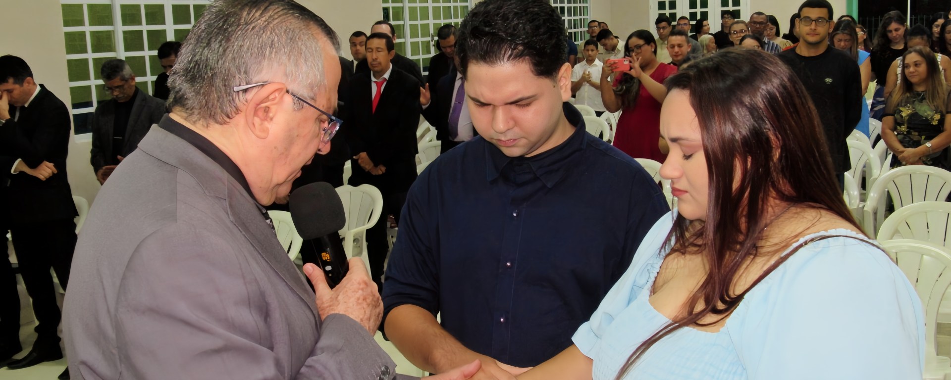 Os jovens Breno Viana e Ana Beatriz Araújo oficializaram o noivado durante o Culto Evangelístico realizado na noite do último domingo, dia 15. Na presença de toda a igreja e familiares dos noivos, o pastor João Alberto orou e abençoou esse compromisso deles de formar uma família. Breno e Aninha, como é conhecida, fazem parte da mocidade da igreja e desempenham seus ministérios com excelência.
