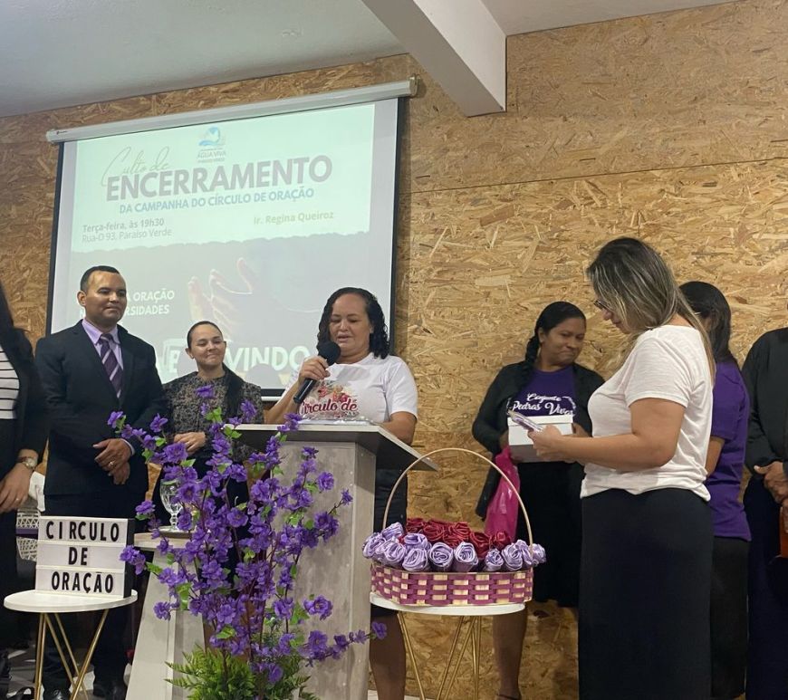 Por Juçara Araújo A congregação Paraíso Verde encerrou a campanha do Círculo de Oração com culto festivo realizado na noite do dia 29 de abril (terça-feira). A campanha teve como tema “O poder da oração nas adversidades” (Romanos 5.3.5) e a preletora da noite foi a irmã Regina Queiroz, membro da Sede. A congregação de Paraíso Verde é dirigida pelo casal: evangelista Tiago Steferson e … Continuar lendo Círculo de oração encerra campanha no Paraíso Verde